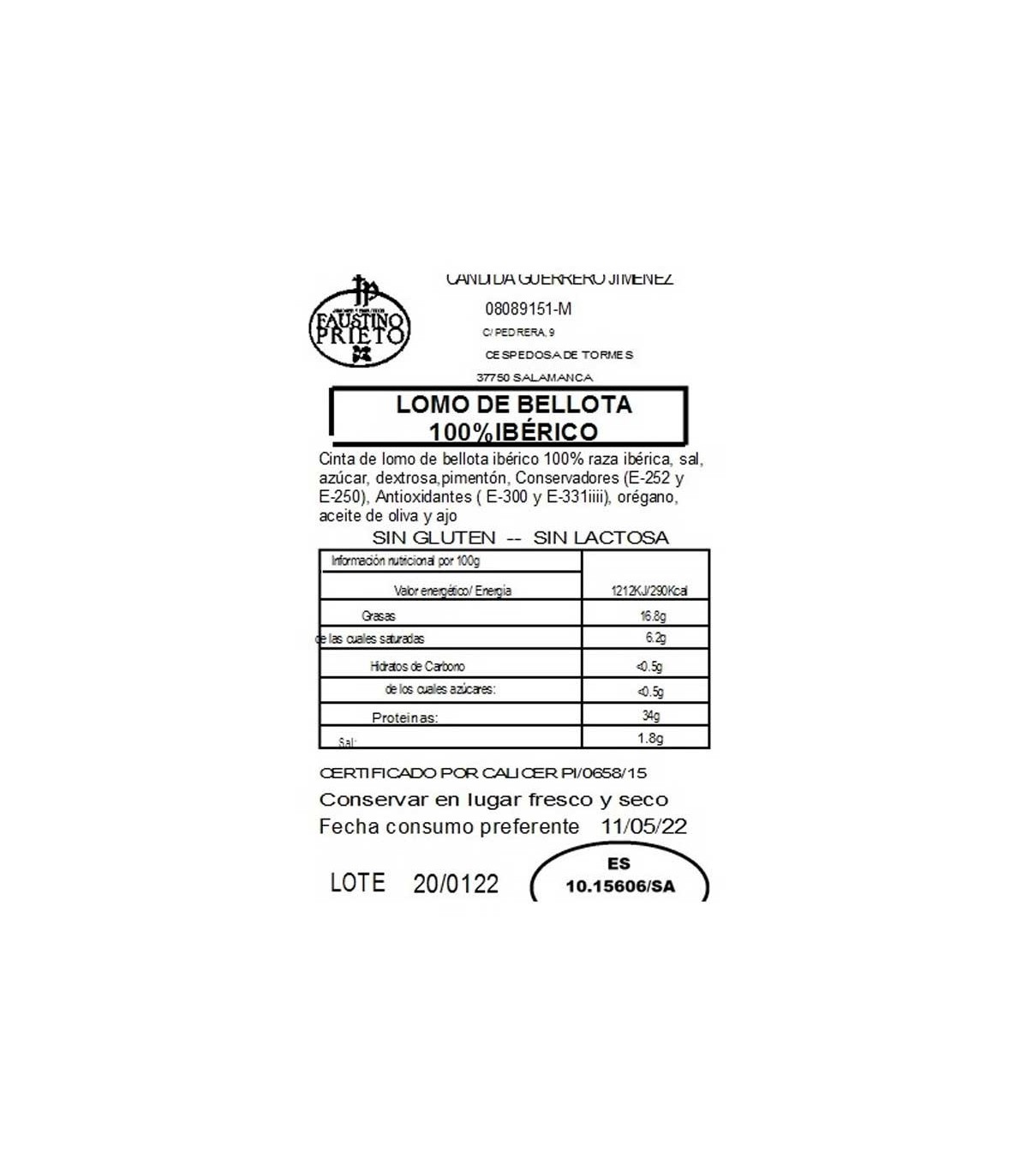 TECHNISCHES DATENBLATT 100% iberische Bellota-Lende. Faustino Prieto