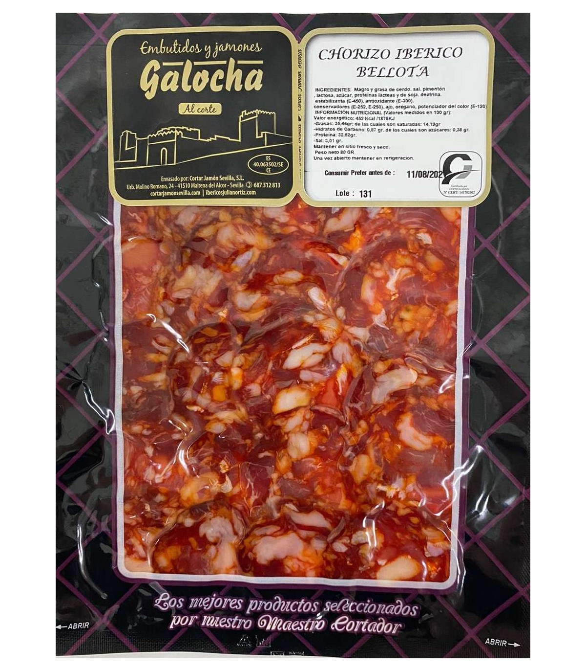 Informations sur Tranches de corn-abut-a-gallota Chorizo ibérique - Galocha