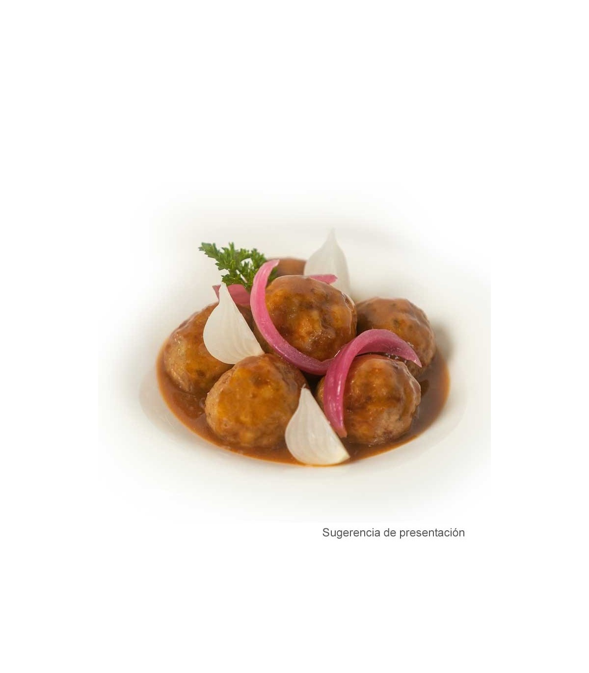 Voir plus de produits de ce producteurSavourez la haute cuisine du restaurant El Ermitaño à la maison avec des boulettes de porc Melquiades ibérico aux graines et au gingembre. Ce plat de 5e gamme comprend 4 paquets de boulettes de viande de 8 unités chacun, soit un total de 32 boulettes de viande, accompagnées d’une sauce au gingembre pasteurisée dans un plateau thermosoudé.