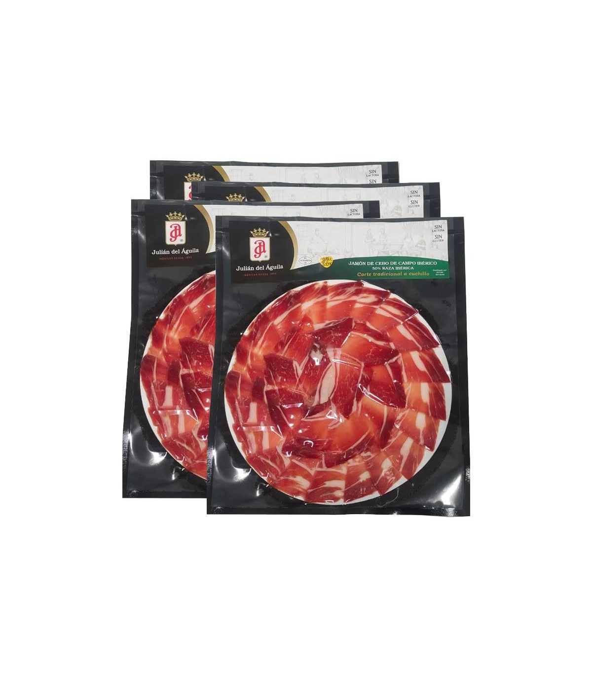Voir plus de produits de ce producteur1kg. Jambon appât de champ 50% ibérique tranché au couteau. 10 sachets de 100grs.