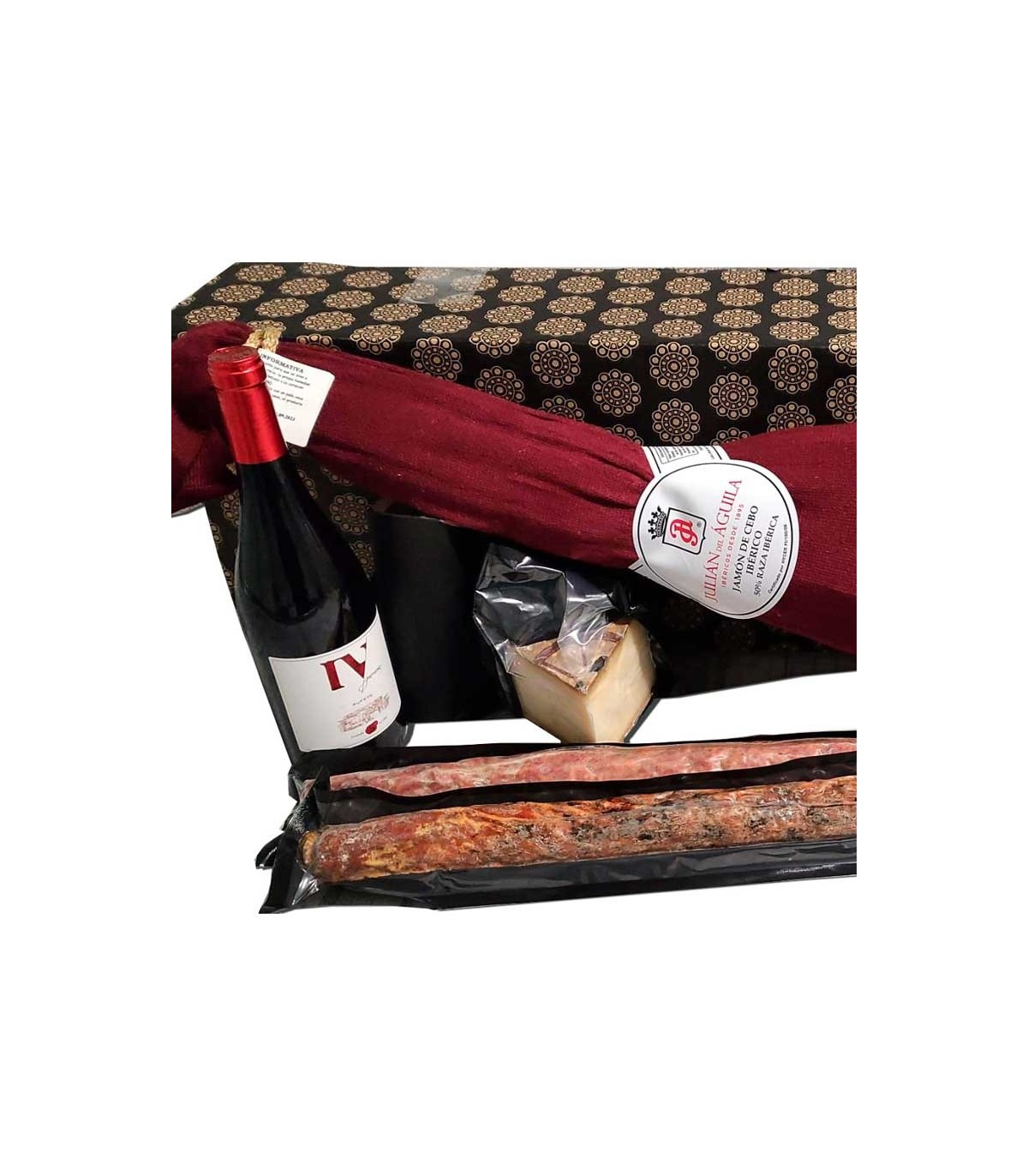 Voir plus de produits de ce producteurLe panier de Noël comprend un vin rouge Tempranillo AOP Ribera del Duero de 8,5 kg de jamón de cebo Ibérico, 1 kg de bellota chorizo ibérico, 1 kg de bellota salchichón ibérico, 1/4 de fromage Viejo Rueda (environ 0,75 kg) et une boîte en carton décorée d’une poignée. Ce panier est spécialement conçu pour les entreprises.