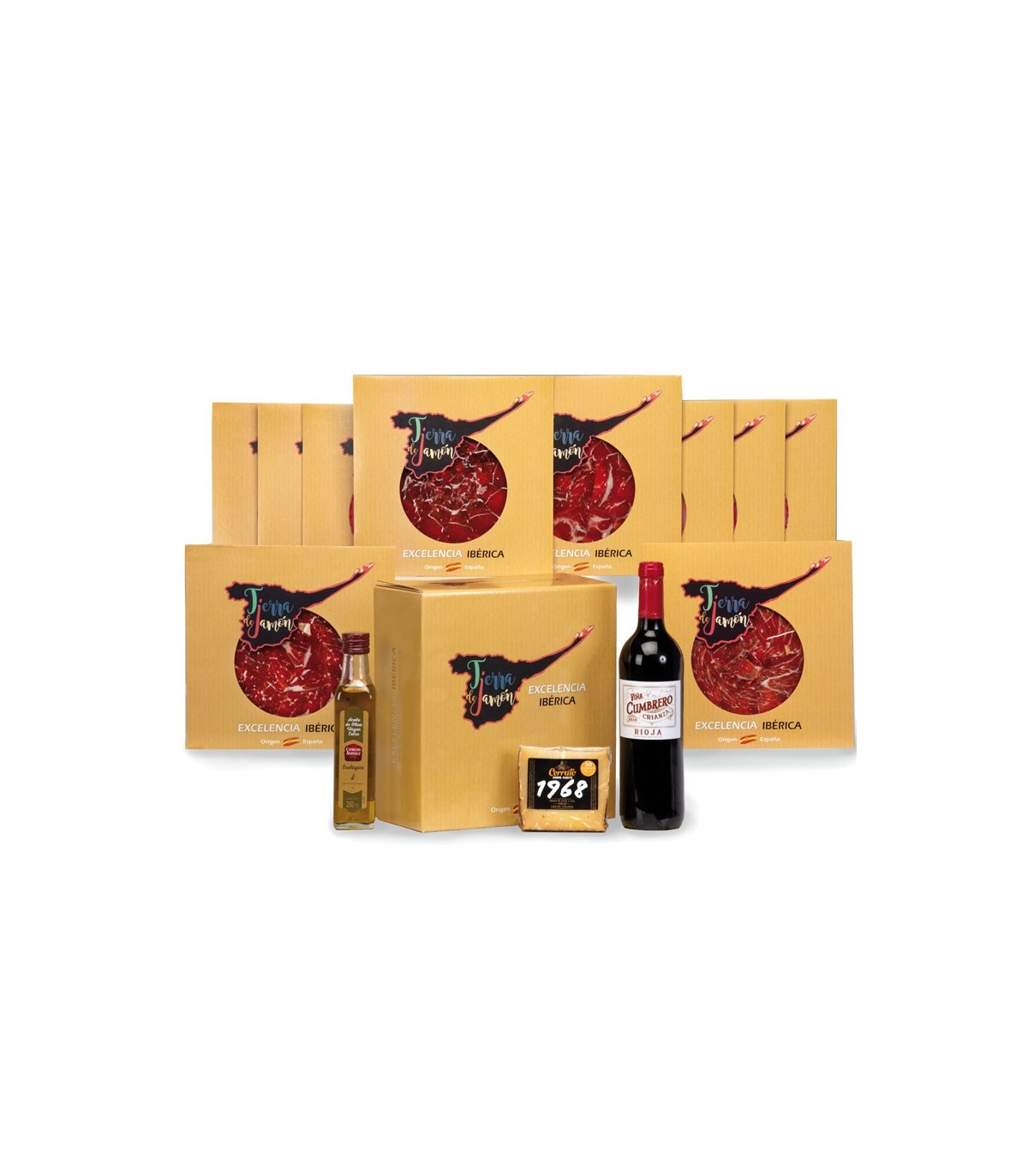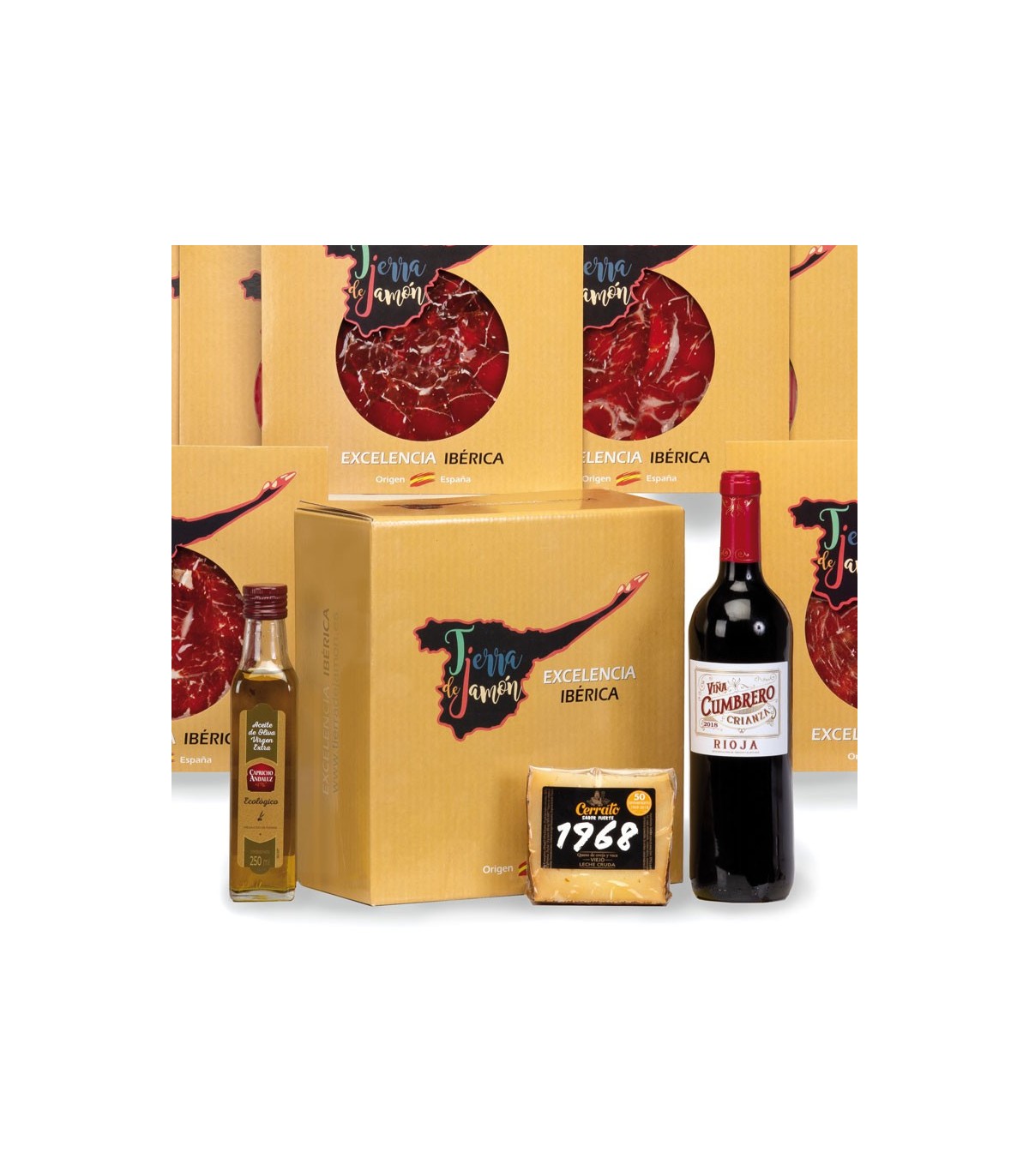 This batch contains Crianza red wine, extra virgin olive oil, cured blended cheese, Iberian bait shoulder, and a luxury designer case. It can be customized for company baskets. Contact us for custom options.