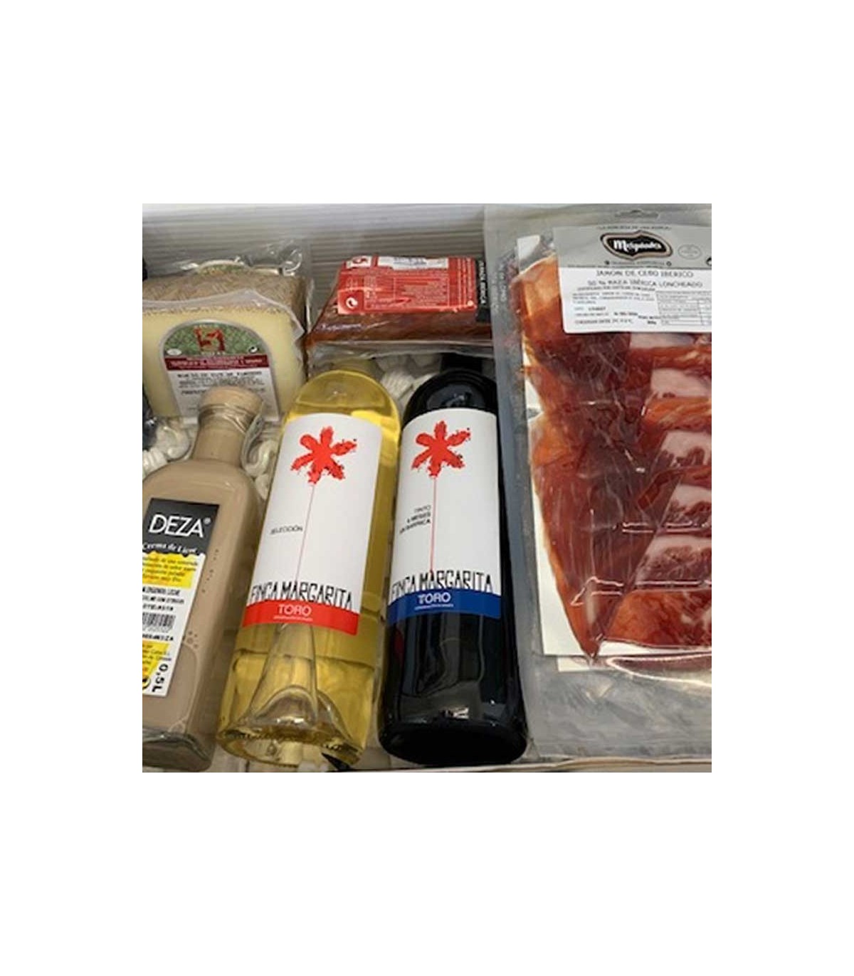 See more products from this producerThe Christmas Bundle includes a 5kg cebo de campo paleta ibérica, wines, choice of Gin or Whisky, Cava, cold cuts, cheeses, pâté, Christmas sweet assortment, almond nougat, chocolate nougat, all in a gift box.