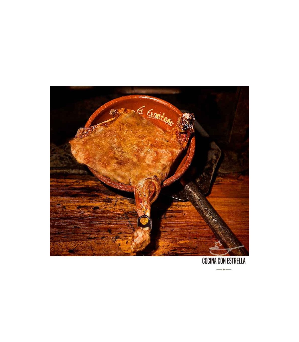 Ver más productos de este productorThis 5th range dish features a Cuarto Frontado de Lechazo PGI Castilla y León with a traditional roast in its juices. The recipe and cooking are the work of the renowned El Ermitaño Restaurant in Benavente, Zamora, awarded with 1 Michelin Star and 2 Repsol Suns.