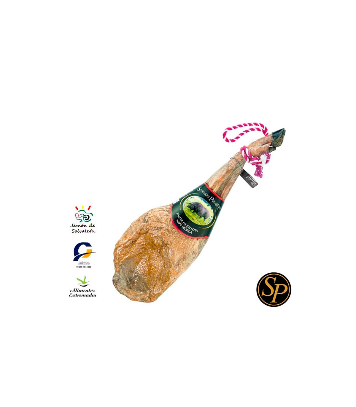 Bellota shoulder 100% Iberian breed, handmade in the Dehesa of Extremadura, obtained from the front extremities of the best Iberian pig fed with acorns and roots of plants during the montanera. Señorío Porrino offers this black leg of the Iberian, recognized for its juicy flavor and texture, as an exquisite homemade piece of high quality.