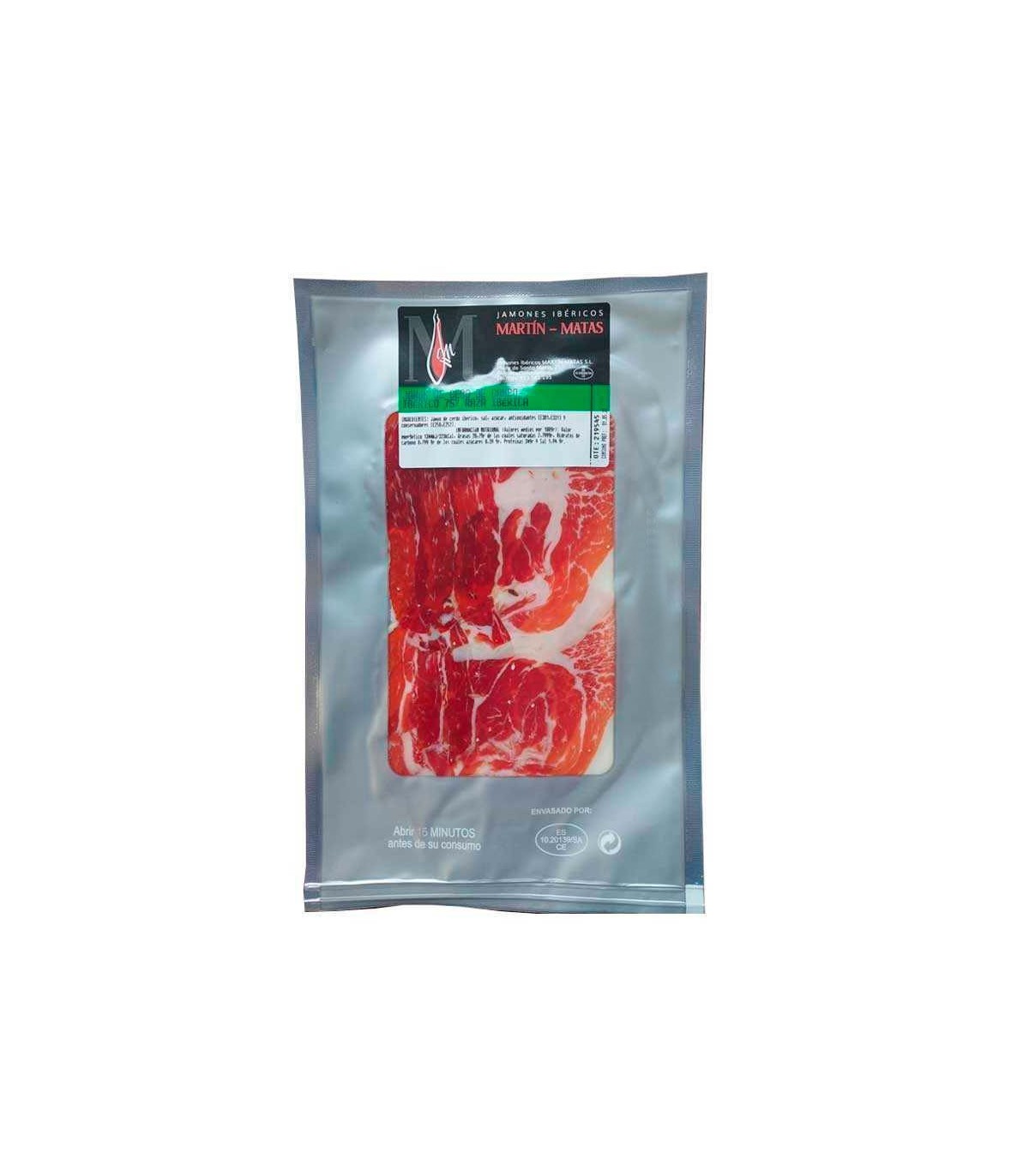 The 75% field Jamón de cebo of ibérica sliced by machine and vacuum is made with Iberian pigs raised from the Martín Matas family's own livestock. A special country ham cebo . Martín Matas ham always retains its hallmark as a result of the experience and specialization of the fourth generation of this family dedicated to lifelong jamón ibérico .