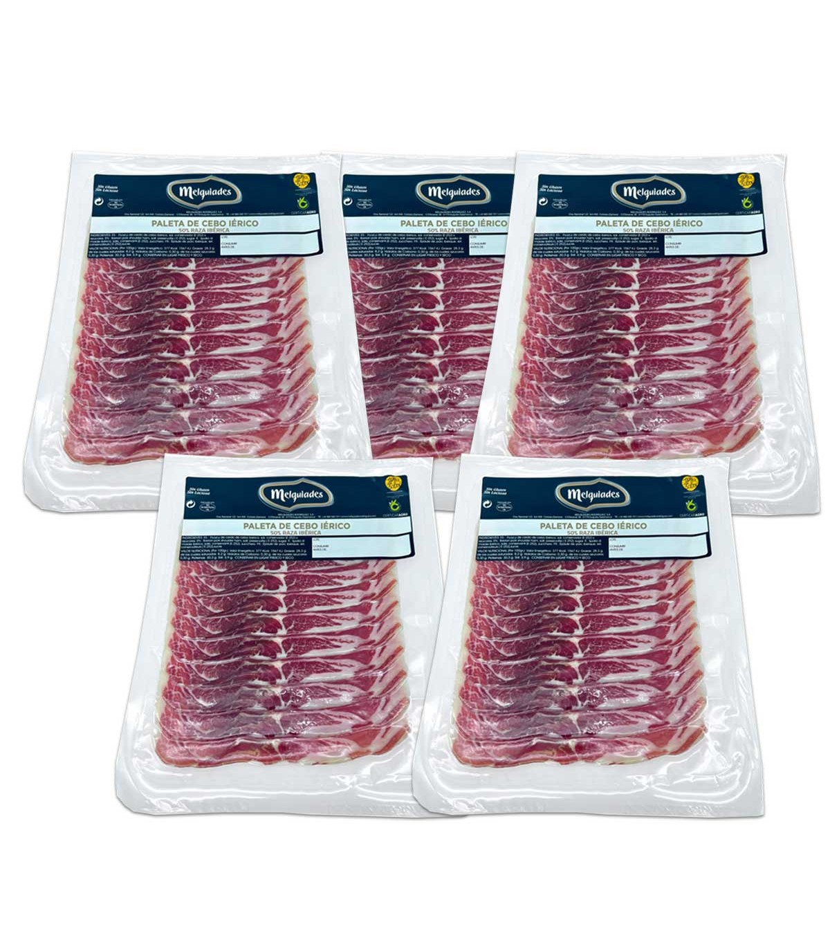 Il paleta ibérica Affettato è presentato in 10 bustine sottovuoto da 100gr ciascuna con un peso complessivo di 1kg.