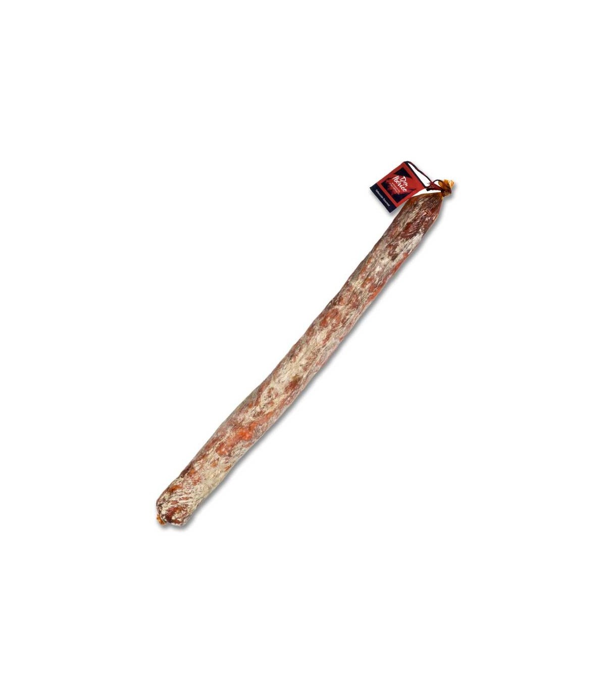 Ver mais produtos deste produtorChouriço 100% ibérico alimentado com bolota, feito com carne de porco 100% ibérica magra selecionada criada em Dehesas e alimentada com bolotas e pastagens durante a Montanera. Feito artesanalmente em Guijuelo há três gerações, com cura mínima de 70 dias em madeira de azinheira. Sem realçadores de sabor ou corantes. Alta qualidade enxuta. Desfrute do melhor Chorizo 100% ibérico alimentado com bolota.