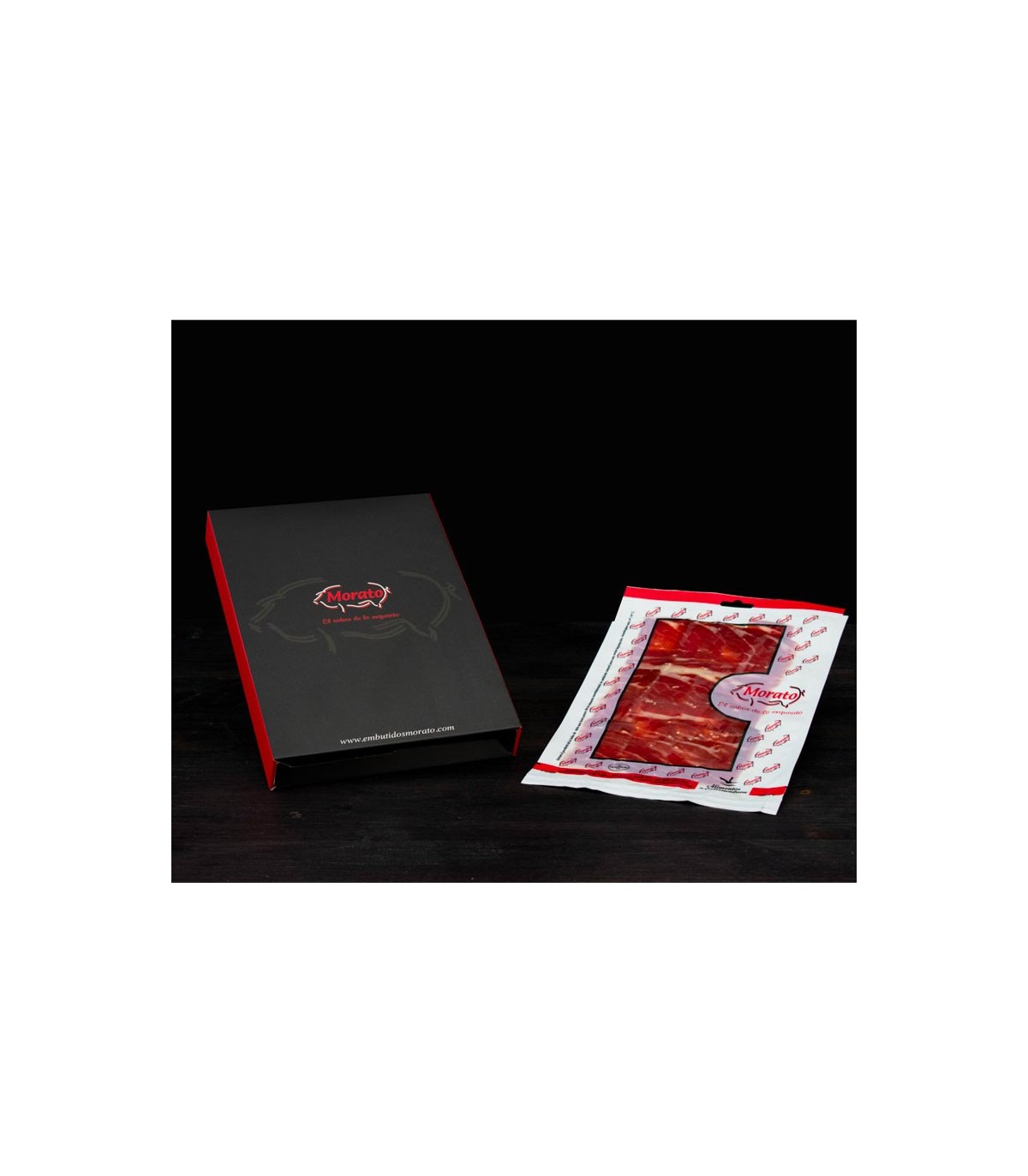 1 kg de Jamón de cebo de campo a 50% é oferecido ibérico Morato, fatiado com uma faca. Este fiambre recebeu inúmeros prémios ao longo dos anos e é conhecido pelo seu sabor excecional, que o distingue de outros produtores. A qualidade dos produtos Jamones Morato é apoiada por múltiplos prémios.