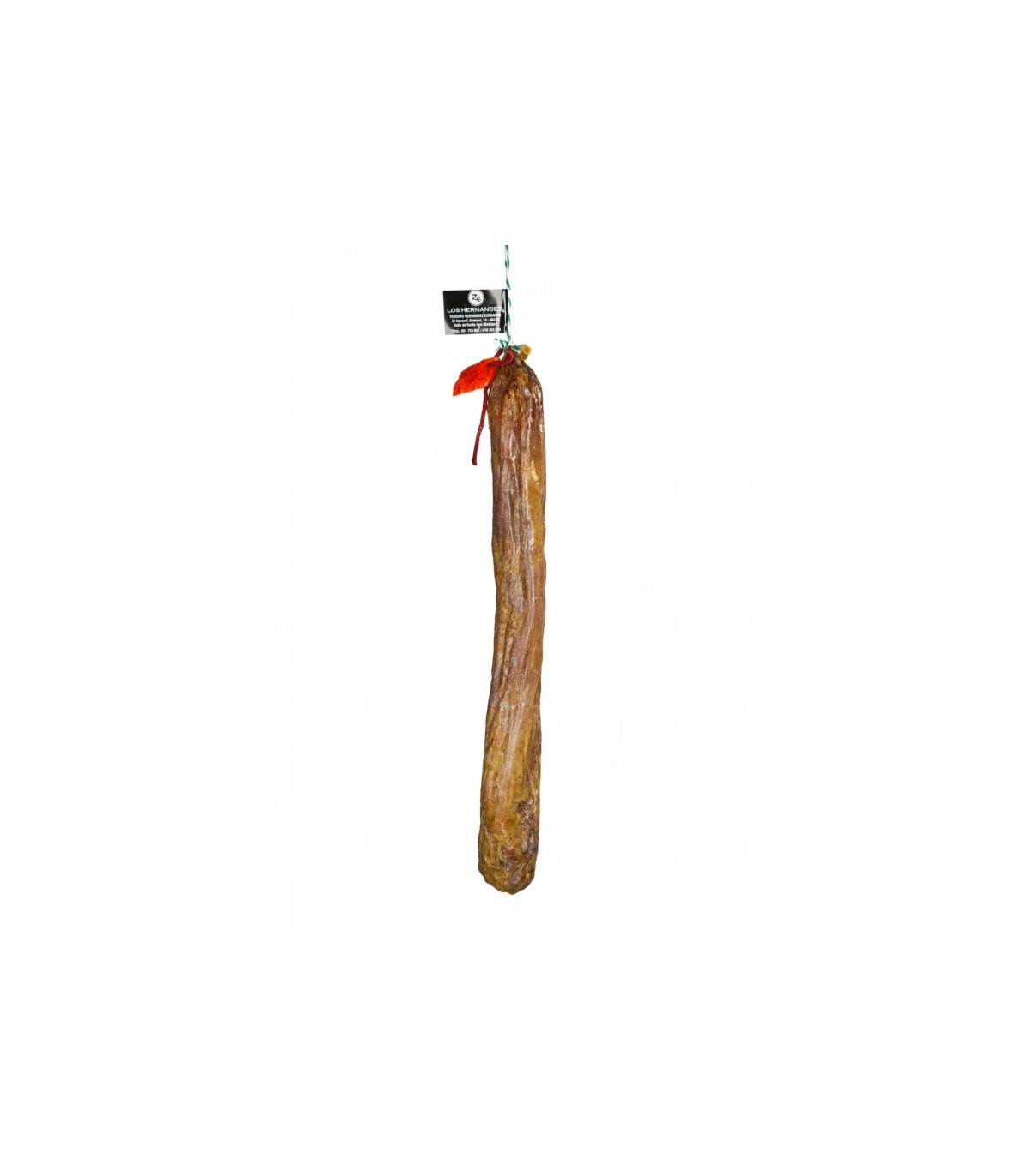 Ver mais produtos deste produtorLombo bellota ibérico tradicional, feito de acordo com a receita da família Hernández no Vale de Santa Ana, perto do município de presunto de Jerez de Los Caballeros. Esta salsicha de alta qualidade, pesando aproximadamente 1,2 kg, é produzida na Extremadura e garante a sua qualidade.