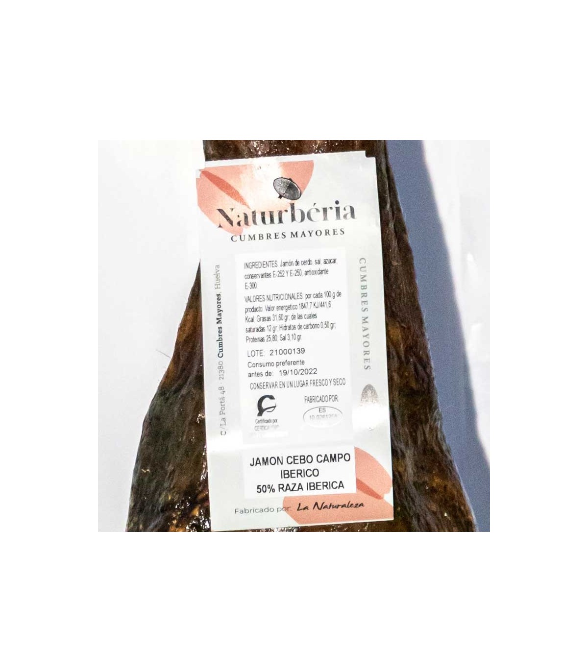 Informações sobre Campo Cebo Presunto 50% ibérico. Naturberia. Huelva