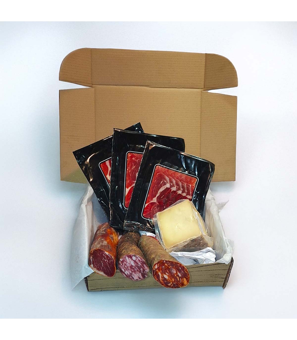 Vezi mai multe produse de la acest producătorPachet gourmet ideal de oferit cadou, care include 100% ibérico jamón de bellota, cârnați iberici bellota și brânză pură de oaie extra maturată, toate făcute cu porci iberici slabi crescuți în libertate și hrăniți cu bellota în montanera.