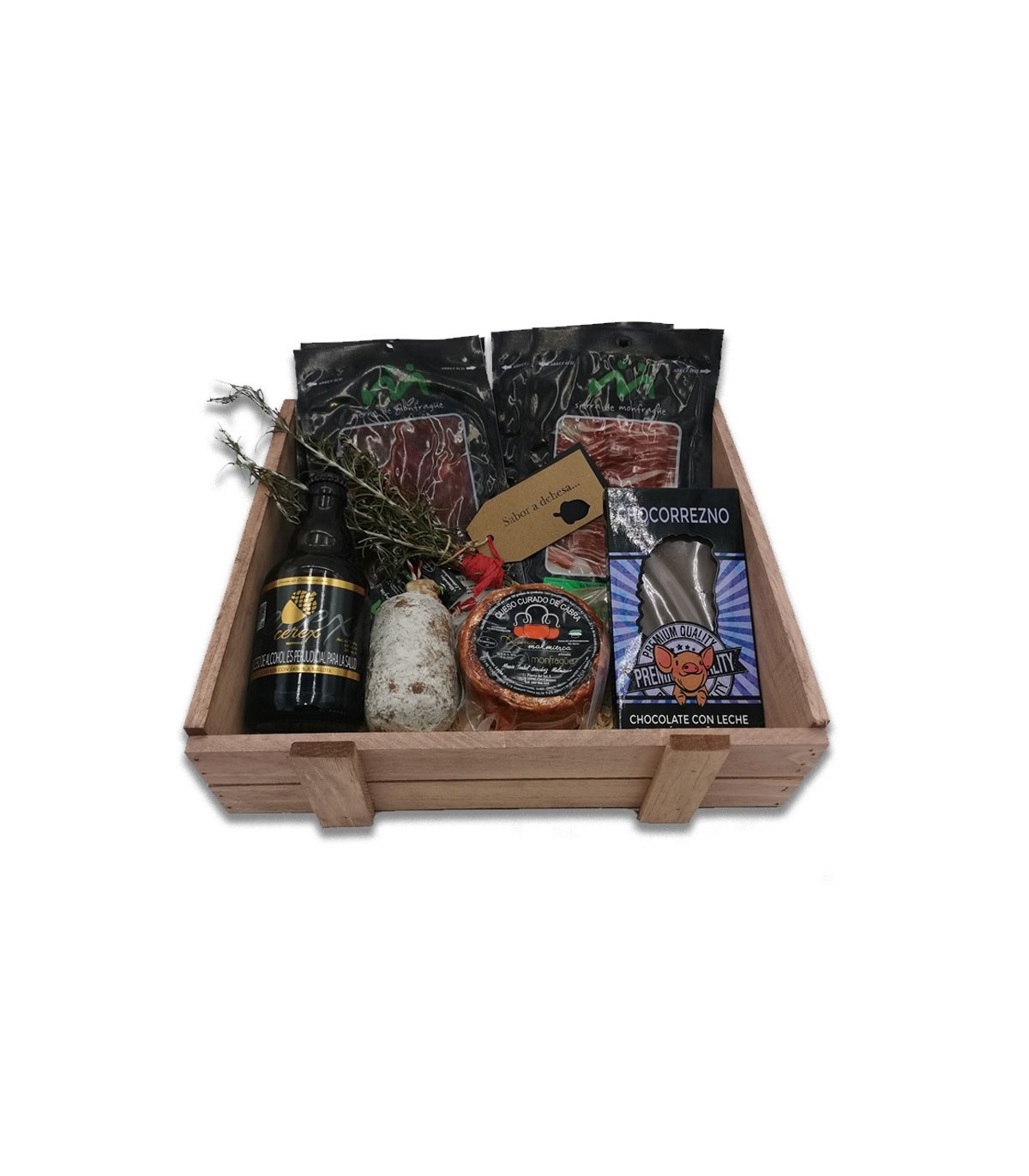 Vezi mai multe produse de la acest producătorA fost selectat un lot de produse iberice care sunt ideale pentru un cadou original. Include șuncă și lomo din câmpul cebo 75% ibérico, bere artizanală aromată cu bellota, chorizo ibérico, un bar Chocorrezno și brânză artizanală din lapte de capră. O oportunitate de a vă bucura de arome gourmet autentice la un preț special.