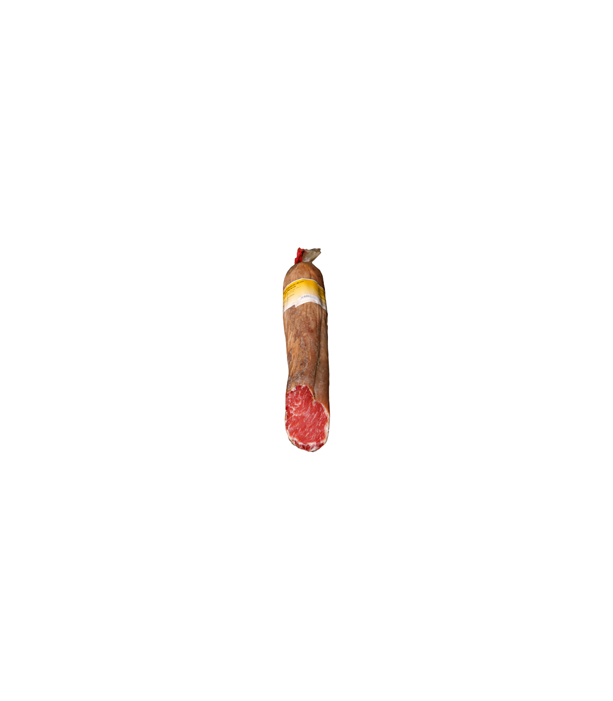 Vezi mai multe produse de la acest producătorSemnătura Lomo Extremadura provine de la animale crescute în regiune și hrănite cu ingrediente locale. Oferă o aromă excepțională, fără boia, și este prezentată într-un format de jumătate de lomo, aproximativ 650 de grame, la 34,95 € pe unitate. Un produs unic și delicios.
