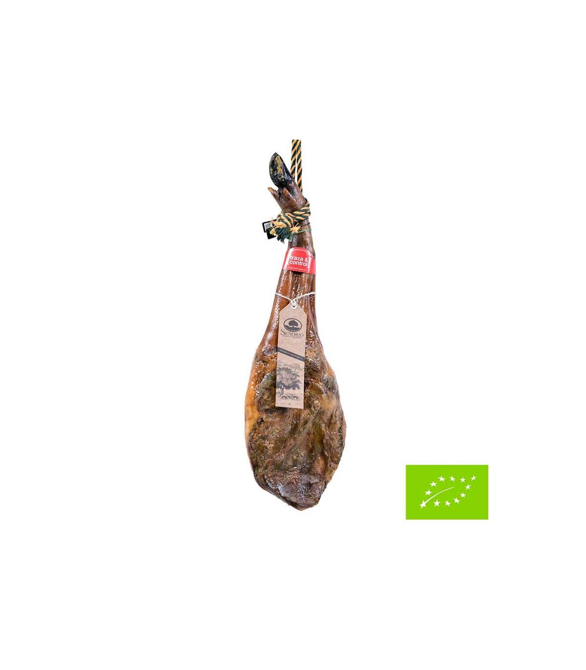 bellota paleta ibérica 100% organic Señorío de Montanera are trei sigilii diferite: cel care aparține standardului de calitate al ibérico care identifică piesa ca fiind jamón de bellota ibérica rasă 100%, cel al Señorío de Montanera însuși pentru a-i controla trasabilitatea și al treilea cu logo-ul alimentelor ecologice certificate de Uniunea Europeană.